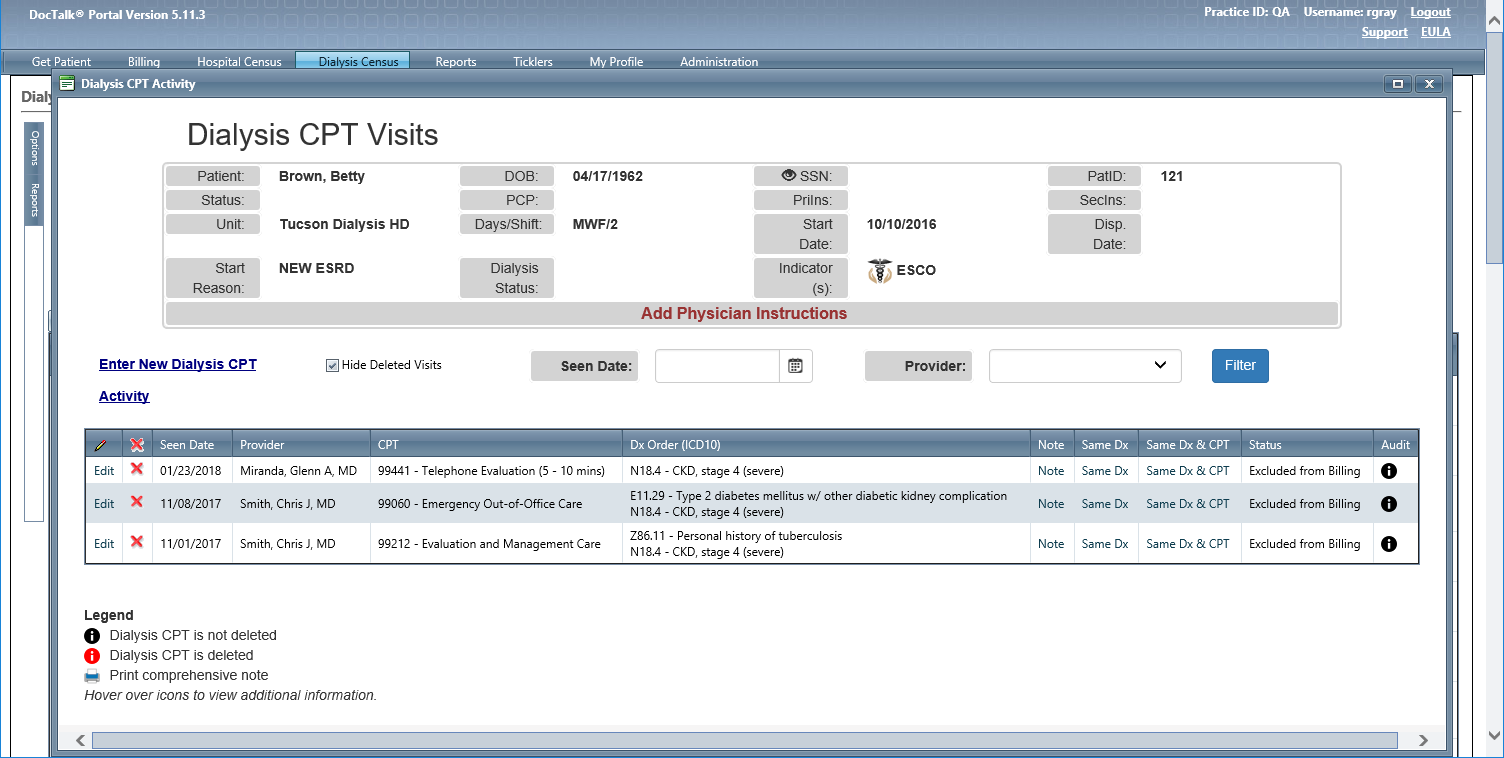 sign-out, and dialysis visit tracking via a mobile device and/or Web Portal.